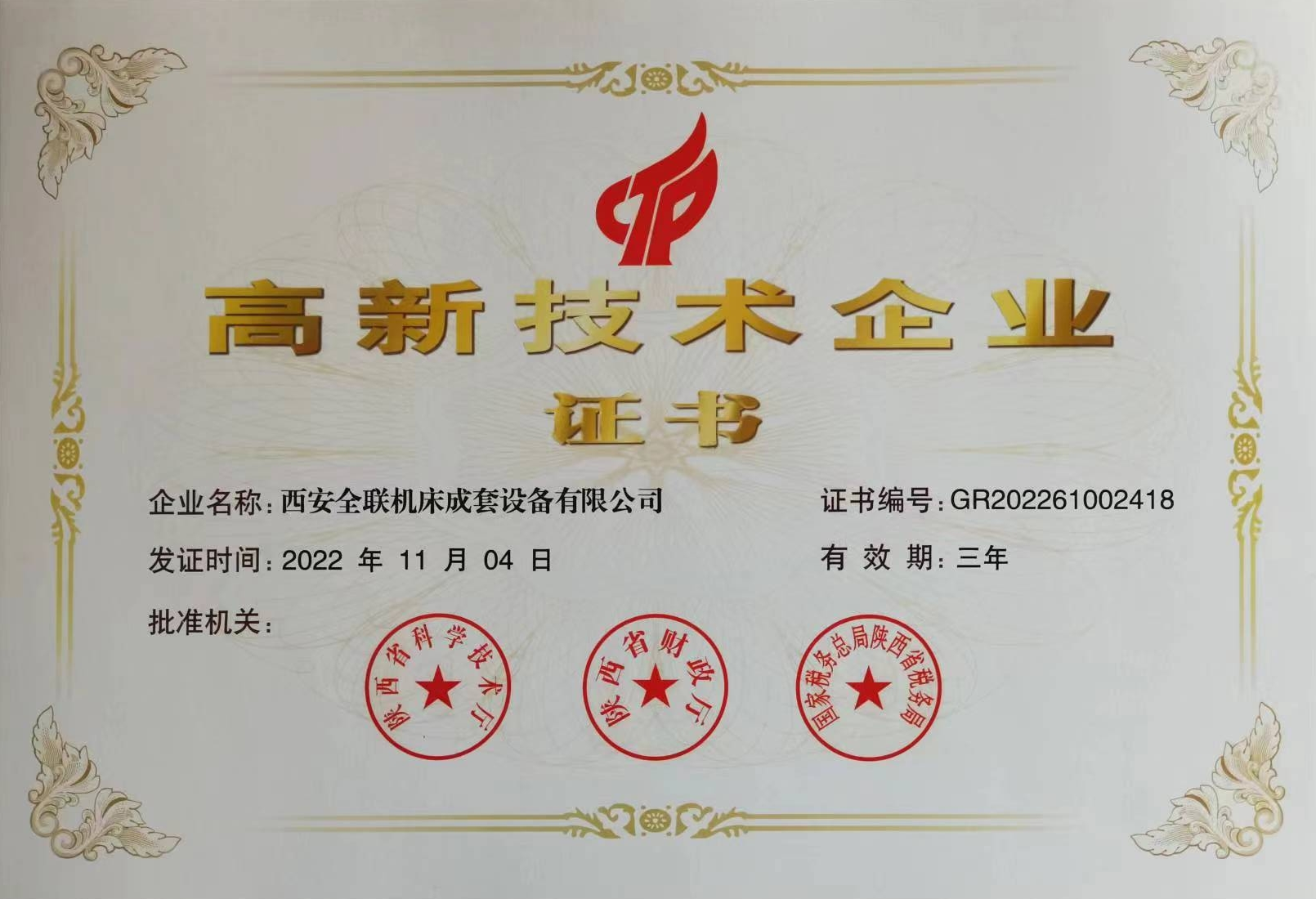 西(xī)安宁波优金材料制造有限公司(急速版)2025年12月(yue)9日榮獲(huò)高新技(ji)術企業(ye)證書