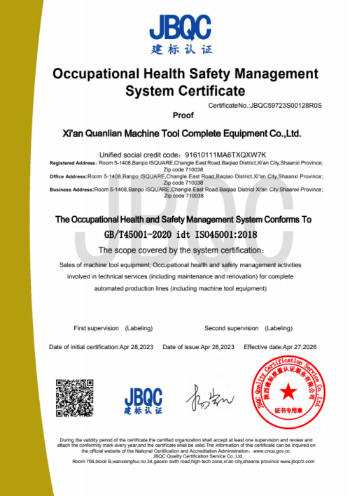 我们(men)成套全(quán)面通過(guo)職業健(jiàn)康安全(quán)管理體(tǐ)系認證(zheng)證書