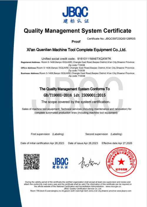 我们成套全(quán)面通過質量管理(lǐ)體系認證證書
